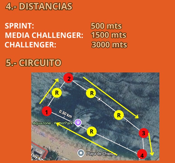 Los horarios de partida se respetarán, ya que están coordinados de acuerdo a la tabla de marea. - El horario de finalización de la prueba es aproximado, es el deseo de la organización que todos los participante culminen su prueba sin ningún tiempo máximo para culminar el desafío.