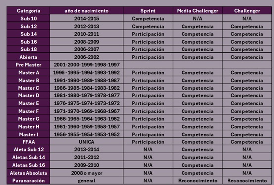 • Solo a partir de la categoría SUB 12 pueden nadar una prueba individual y una de relevo.